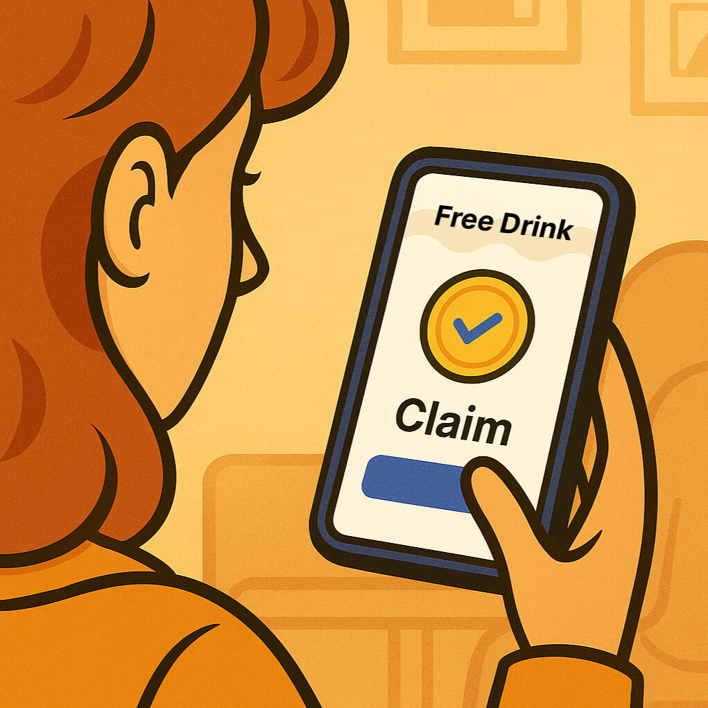 3. Guests redeem in venue ➜ tracked
