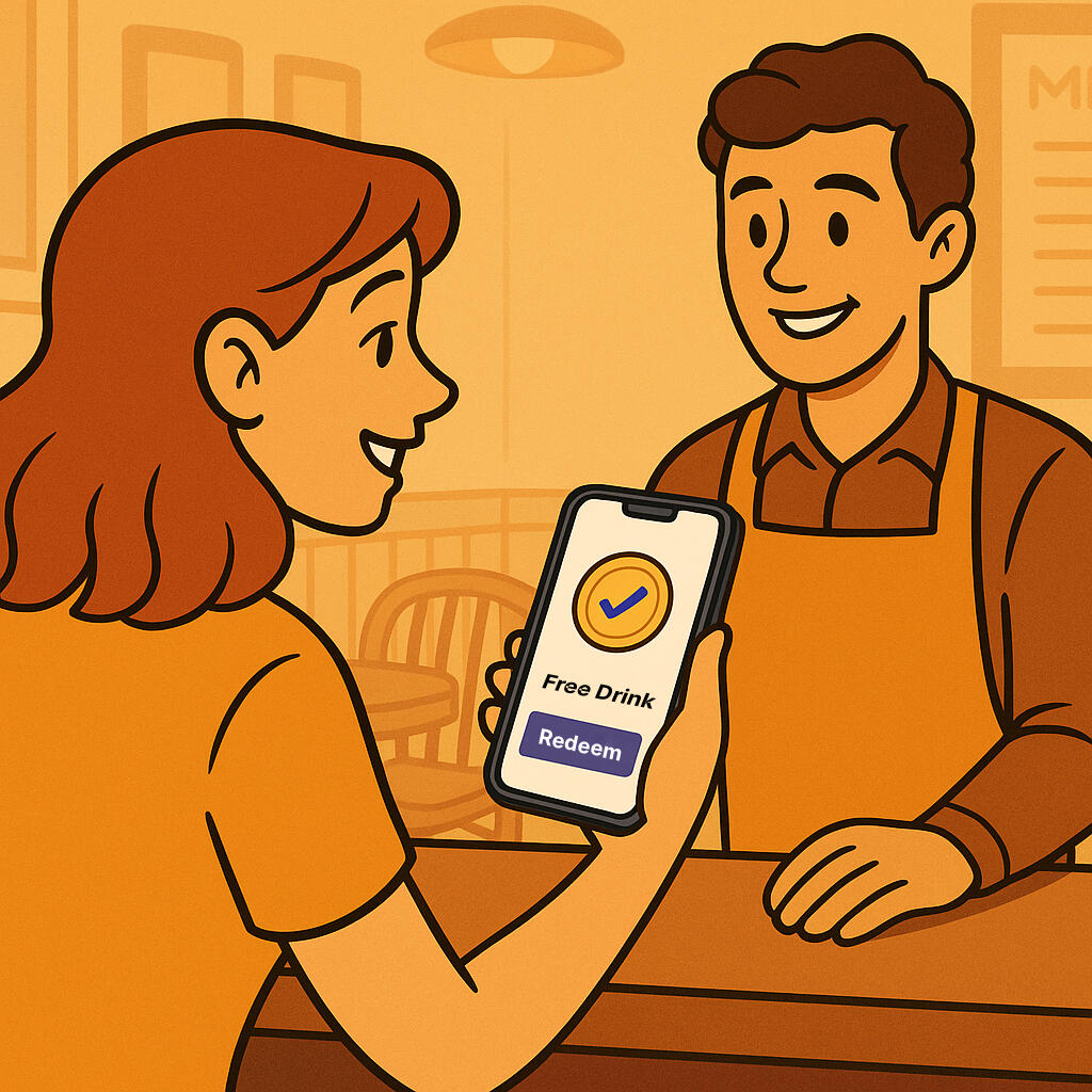 Pick a partner. Issue a digital token tied to a simple reward they can share in a post or story — no special setup or POS connection needed.
